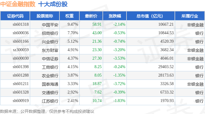 中证金融(000934)指数十大成份股详情如下:
