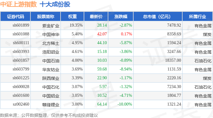 证券之星消息,11月21日,中证上游(000961)指数报收于4482.78点,跌3.87%,成交722.89亿元,换手率0.82%。当日该指数成份股中,上涨的有1家,中国神华以0.17%的涨幅领涨,下跌的有49家,赣锋锂业以10.0%的跌幅领跌。
