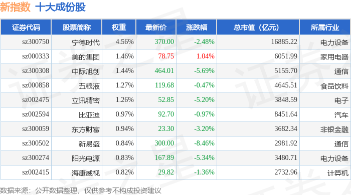 新指数(399100)十大成份股详情如下: