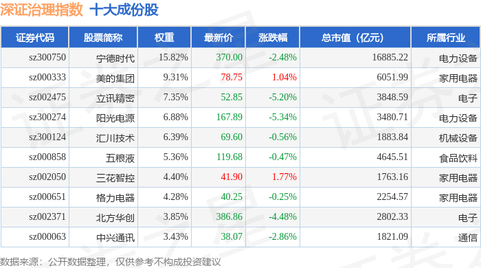 深证治理(399328)指数十大成份股详情如下:
