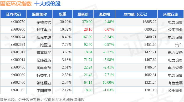 国证环保(399358)指数十大成份股详情如下: