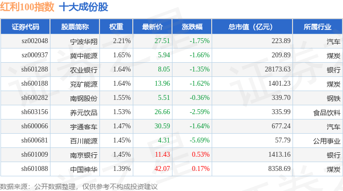 证券之星消息,11月21日,红利100(399411)指数报收于3500.83点,跌2.08%,成交553.69亿元,换手率0.46%。当日该指数成份股中,上涨的有4家,建发股份以2.58%的涨幅领涨,下跌的有95家,亚太科技以6.57%的跌幅领跌。