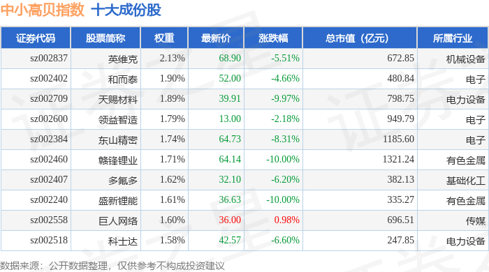证券之星消息,11月21日,中小高贝(399664)指数报收于1384.5点,跌4.46%,成交1088.1亿元,换手率3.56%。当日该指数成份股中,上涨的有9家,木林森以4.2%的涨幅领涨,下跌的有91家,江特电机以10.03%的跌幅领跌。