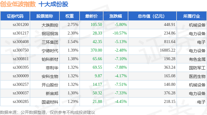 创业低波(399692)指数十大成份股详情如下: