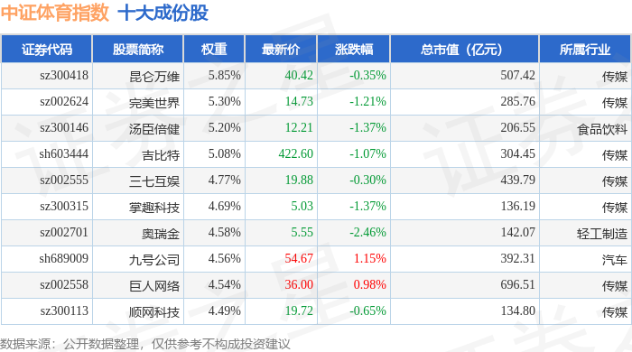 资金流向方面,中证体育(399804)指数成份股当日主力资金净流出合计6.57亿元,游资资金净流入合计2.22亿元,散户资金净流入合计4.33亿元。成份股资金流向详情见下表: