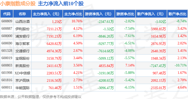 资金流向方面,小康指数(399901)成份股当日主力资金净流出合计92.68亿元,游资资金净流入合计17.81亿元,散户资金净流入合计74.87亿元。成份股资金流向详情见下表: