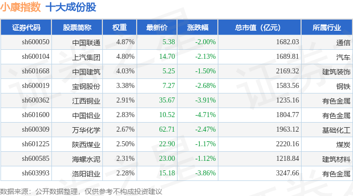 证券之星消息,11月21日,小康指数(399901)报收于6217.31点,跌2.23%,成交1148.59亿元,换手率0.82%。当日该指数成份股中,上涨的有4家,传音控股以6.26%的涨幅领涨,下跌的有93家,合盛硅业以9.82%的跌幅领跌。