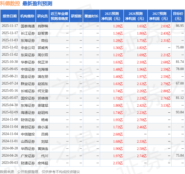 证券之星消息,2025年11月21日科德数控(688305)发布公告称公司于2025年11月18日进行路演,浦银安盛、长江资管、远希基金、中庚基金、汇添富基金、安信基金、玉侨合基金、中财基金参与。