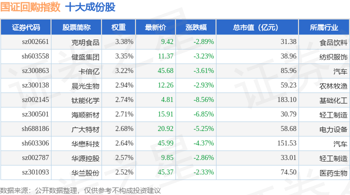 资金流向方面,国证回购(980063)指数成份股当日主力资金净流出合计10.27亿元,游资资金净流入合计1.97亿元,散户资金净流入合计8.3亿元。成份股资金流向详情见下表: