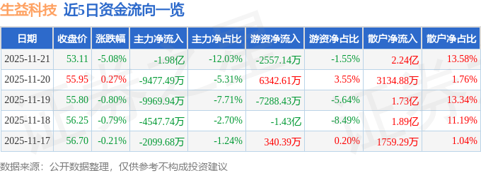 证券之星消息,截至2025年11月21日收盘,生益科技(600183)报收于53.11元,下跌5.08%,换手率1.28%,成交量30.64万手,成交额16.5亿元。