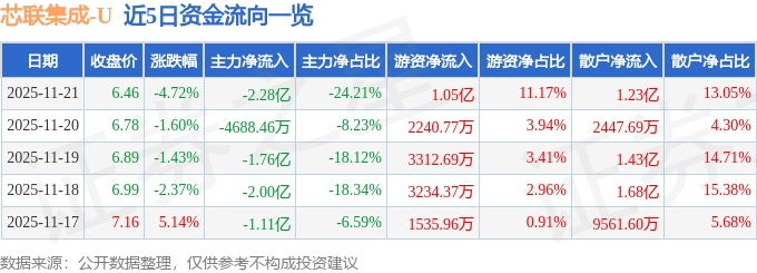 证券之星消息,截至2025年11月21日收盘,芯联集成(688469)报收于6.46元,下跌4.72%,换手率3.25%,成交量143.94万手,成交额9.42亿元。