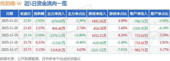 证券之星消息,截至2025年11月21日收盘,优刻得(688158)报收于22.81元,下跌2.65%,换手率3.17%,成交量12.83万手,成交额2.95亿元。