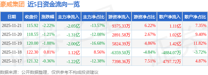 11月21日的资金流向数据方面,主力资金净流出2.05亿元,占总成交额13.57%,游资资金净流入9375.33万元,占总成交额6.22%,散户资金净流入1.11亿元,占总成交额7.35%。