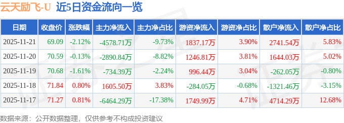 证券之星消息,截至2025年11月21日收盘,云天励飞(688343)报收于69.09元,下跌2.12%,换手率2.56%,成交量6.76万手,成交额4.71亿元。