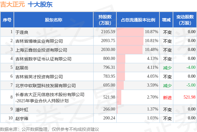 根据吉大正元2025年三季报公布的十大股东详情如下: