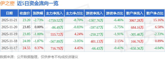 11月21日的资金流向数据方面,主力资金净流出1759.52万元,占总成交额8.7%,游资资金净流出1307.76万元,占总成交额6.46%,散户资金净流入3067.28万元,占总成交额15.16%。