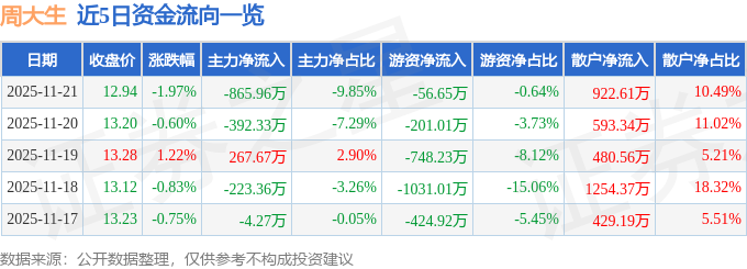 11月21日的资金流向数据方面,主力资金净流出865.96万元,占总成交额9.85%,游资资金净流出56.65万元,占总成交额0.64%,散户资金净流入922.61万元,占总成交额10.49%。