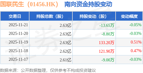 证券之星消息,11月21日南向资金减持13.65万股国联民生(01456.HK)。近5个交易日中,获南向资金增持的有2天,累计净增持223.65万股。近20个交易日中,获南向资金增持的有12天,累计净增持1046.45万股。截至目前,南向资金持有国联民生(01456.HK)2.63亿股,占公司已发行普通股的59.42%。