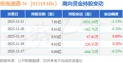 证券之星消息,11月21日南向资金减持2031.18万股极兔速递-W(01519.HK)。近5个交易日中,获南向资金减持的有3天,累计净减持2344.31万股。近20个交易日中,获南向资金减持的有9天,累计净减持2432.81万股。截至目前,南向资金持有极兔速递-W(01519.HK)7.81亿股,占公司已发行普通股的8.69%。