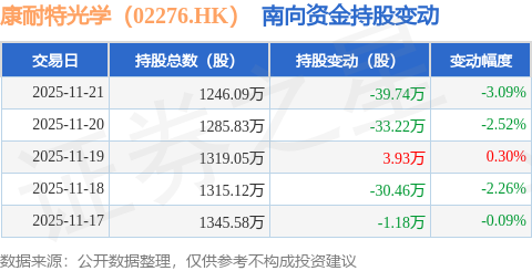 证券之星消息,11月21日南向资金减持39.74万股康耐特光学(02276.HK)。近5个交易日中,获南向资金减持的有4天,累计净减持100.67万股。近20个交易日中,获南向资金增持的有13天,累计净增持146.51万股。截至目前,南向资金持有康耐特光学(02276.HK)1246.09万股,占公司已发行普通股的2.59%。