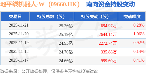 证券之星消息,11月21日南向资金增持694.97万股地平线机器人-W(09660.HK)。近5个交易日中,获南向资金增持的有5天,累计净增持6947.33万股。近20个交易日中,获南向资金增持的有17天,累计净增持2.69亿股。截至目前,南向资金持有地平线机器人-W(09660.HK)25.26亿股,占公司已发行普通股的17.23%。