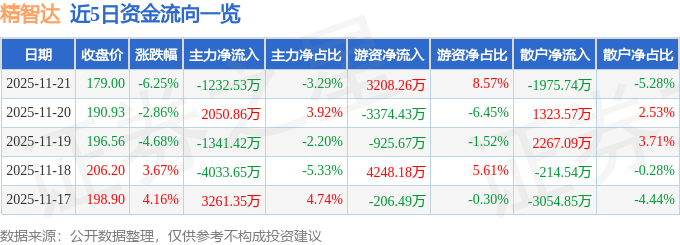 证券之星消息,截至2025年11月21日收盘,精智达(688627)报收于179.0元,下跌6.25%,换手率2.82%,成交量2.04万手,成交额3.74亿元。