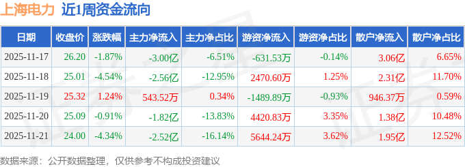 沪深股通持股方面,截止2025年11月21日收盘,上海电力沪股通持股数为5128.22万股,占流通股比为196.0%。