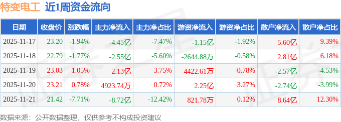 资金流向数据方面,本周特变电工主力资金合计净流出13.1亿元,游资资金合计净流入1.36亿元,散户资金合计净流入11.74亿元。本周资金流向一览见下表: