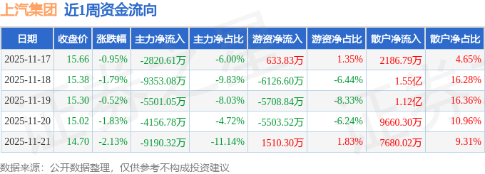 沪深股通持股方面,截止2025年11月21日收盘,上汽集团沪股通持股数为2.91亿股,占流通股比为251.0%。
