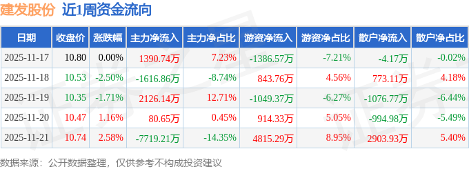资金流向数据方面,本周建发股份主力资金合计净流出5738.55万元,游资资金合计净流入4137.43万元,散户资金合计净流入1601.12万元。本周资金流向一览见下表: