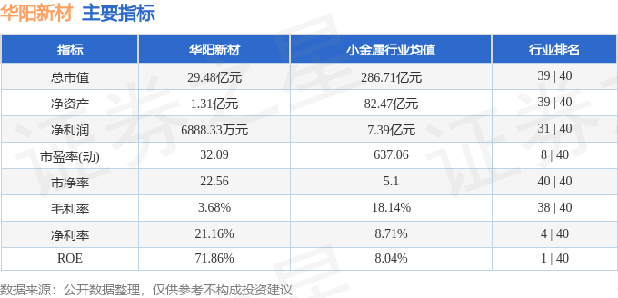 该股主要指标及行业内排名如下: