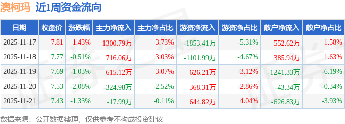 资金流向数据方面,本周澳柯玛主力资金合计净流入2289.0万元,游资资金合计净流出1316.07万元,散户资金合计净流出972.94万元。本周资金流向一览见下表: