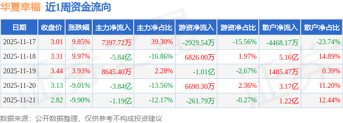 资金流向数据方面,本周华夏幸福主力资金合计净流出9.27亿元,游资资金合计净流入194.1万元,散户资金合计净流入9.25亿元。本周资金流向一览见下表:
