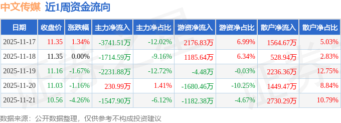 资金流向数据方面,本周中文传媒主力资金合计净流出9004.88万元,游资资金合计净流入495.15万元,散户资金合计净流入8509.73万元。本周资金流向一览见下表: