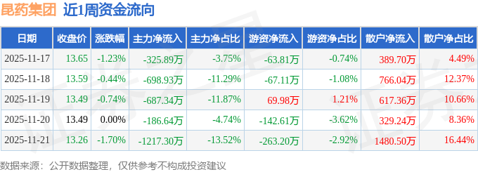 资金流向数据方面,本周昆药集团主力资金合计净流出3116.09万元,游资资金合计净流出466.74万元,散户资金合计净流入3582.84万元。本周资金流向一览见下表: