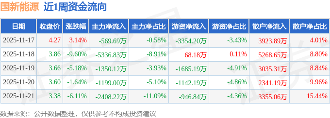 沪深股通持股方面,截止2025年11月21日收盘,国新能源沪股通持股数为1033.85万股,占流通股比为58.0%。
