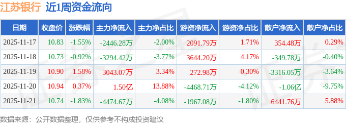 沪深股通持股方面,截止2025年11月21日收盘,江苏银行沪股通持股数为9.06亿股,占流通股比为494.0%。