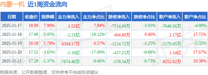 资金流向数据方面,本周内蒙一机主力资金合计净流出1.92亿元,游资资金合计净流出9249.58万元,散户资金合计净流入2.85亿元。本周资金流向一览见下表: