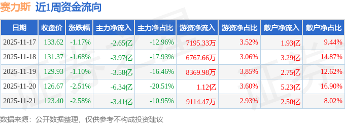 资金流向数据方面,本周赛力斯主力资金合计净流出19.95亿元,游资资金合计净流入4.26亿元,散户资金合计净流入15.69亿元。本周资金流向一览见下表: