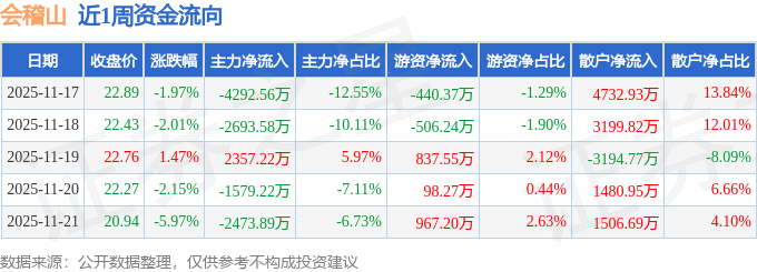 资金流向数据方面,本周会稽山主力资金合计净流出8682.04万元,游资资金合计净流入956.42万元,散户资金合计净流入7725.62万元。本周资金流向一览见下表: