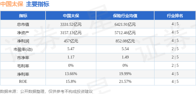 中国太保(601601)主营业务:通过太保寿险为客户提供人身保险产品和服务;通过太保产险、太平洋安信农险为客户提供财产保险产品和服务;通过太平洋健康险为客户提供专业的健康险产品及健康管理服务;通过太保资产开展保险资金运用以及第三方资产管理业务;通过长江养老开展养老金融服务及相关资产管理业务;通过太保资本开展私募基金管理业务及相关咨询服务;通过国联安基金开展公募基金管理业务;公司还通过太保科技提供市场化科技赋能支持和服务。 中国太保2025年三季报显示,前三季度公司主营收入3449.04亿元,同比上升11.06%;归母净利润457.0亿元,同比上升19.29%;扣非净利润440.92亿元,同比上升15.08%;其中2025年第三季度,公司单季度主营收入1444.08亿元,同比上升24.56%;单季度归母净利润178.15亿元,同比上升35.19%;单季度扣非净利润178.68亿元,同比上升35.64%;负债率89.74%,投资收益392.28亿元。