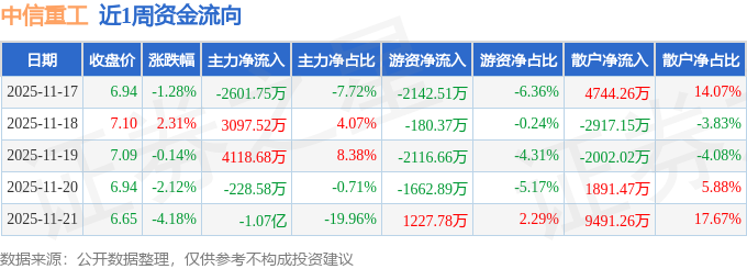 沪深股通持股方面,截止2025年11月21日收盘,中信重工沪股通持股数为3084.48万股,占流通股比为71.0%。
