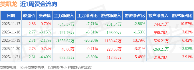 资金流向数据方面,本周美凯龙主力资金合计净流出3581.39万元,游资资金合计净流入1369.23万元,散户资金合计净流入2212.16万元。本周资金流向一览见下表: