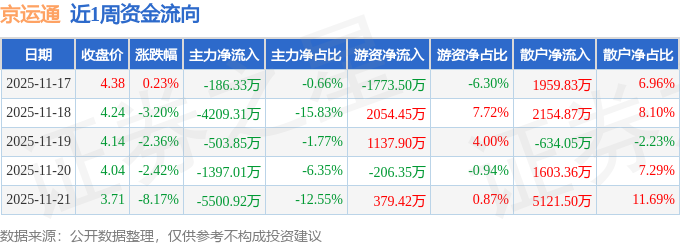 资金流向数据方面,本周京运通主力资金合计净流出1.18亿元,游资资金合计净流入1591.93万元,散户资金合计净流入1.02亿元。本周资金流向一览见下表: