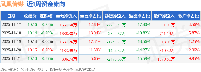 资金流向数据方面,本周凤凰传媒主力资金合计净流入7064.87万元,游资资金合计净流出1.04亿元,散户资金合计净流入3311.25万元。本周资金流向一览见下表: