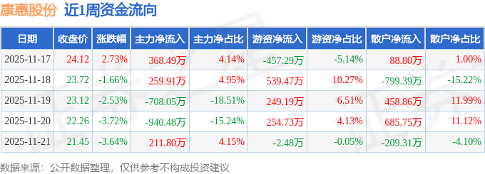 资金流向数据方面,本周康惠股份主力资金合计净流出808.33万元,游资资金合计净流入583.62万元,散户资金合计净流入224.71万元。本周资金流向一览见下表: