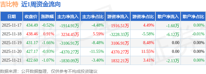 资金流向数据方面,本周吉比特主力资金合计净流出7987.73万元,游资资金合计净流入7997.57万元,散户资金合计净流出9.85万元。本周资金流向一览见下表: