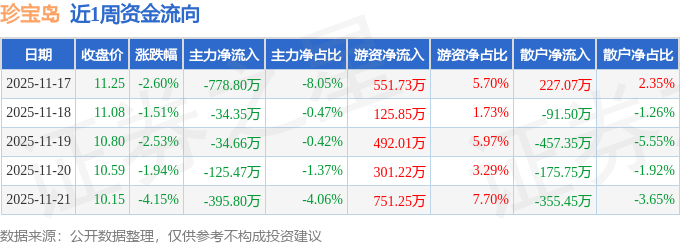 资金流向数据方面,本周珍宝岛主力资金合计净流出1369.08万元,游资资金合计净流入2222.07万元,散户资金合计净流出852.99万元。本周资金流向一览见下表: