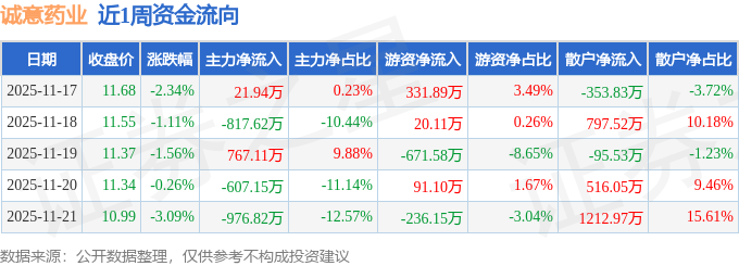 资金流向数据方面,本周诚意药业主力资金合计净流出1612.55万元,游资资金合计净流出464.63万元,散户资金合计净流入2077.18万元。本周资金流向一览见下表:
