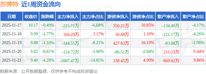 资金流向数据方面,本周苏博特主力资金合计净流出1528.16万元,游资资金合计净流入1086.66万元,散户资金合计净流入441.51万元。本周资金流向一览见下表: